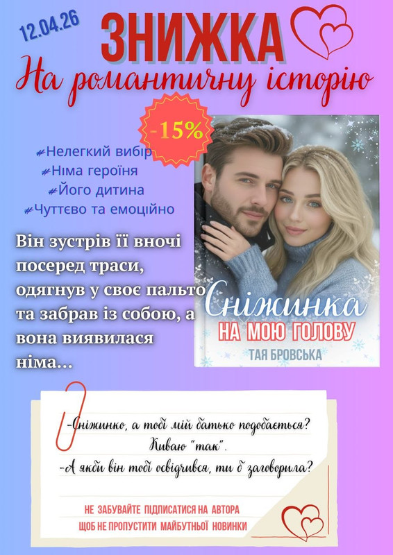 ОСТАННЯ ГОДИНА ЗНИЖКИ! "Сніжинка на мою голову!" Обіймаю! Мирної нічки! Ваша Тая)