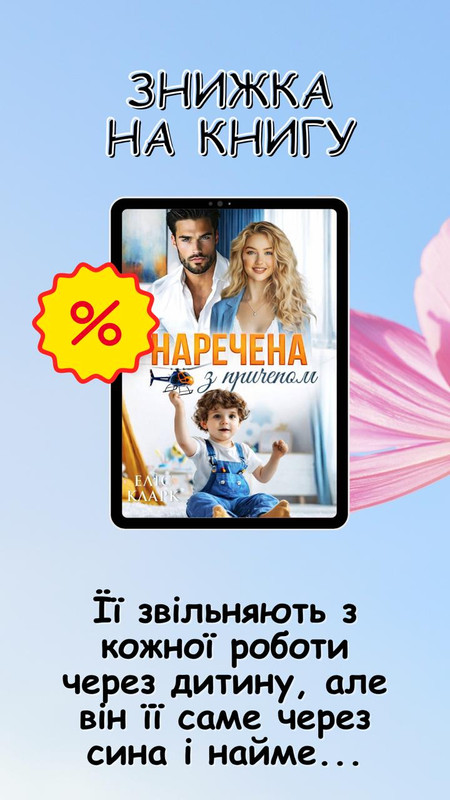 Сьогодні діє знижка на мою нещодавно завершену книгу "НАРЕЧЕНА З ПРИЧЕПОМ"!