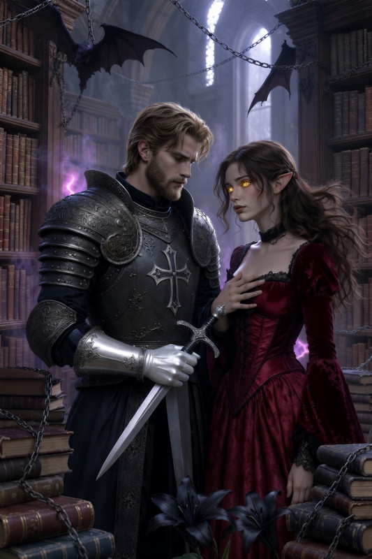 У напівтемряві соборної бібліотеки, під гуркіт ожилих тіней, між ними щось відбувається...