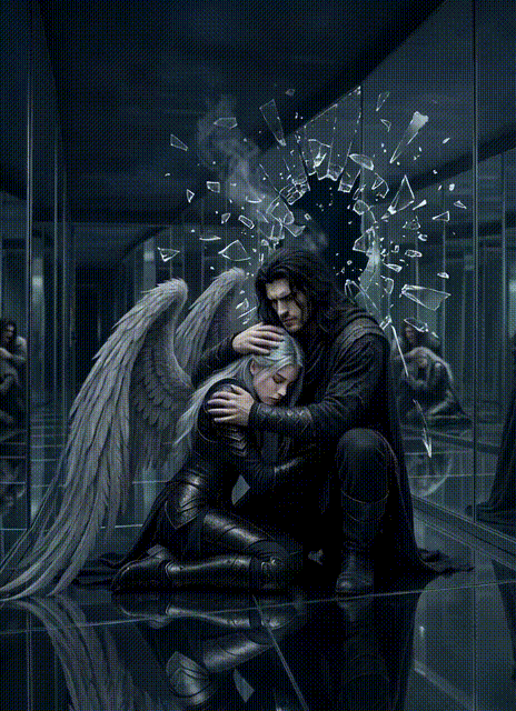 – Азраель! – крикнув Смерть, потягнувши її на себе якраз перед тим, як дзеркало тріснуло, уламки посипались підлогою.