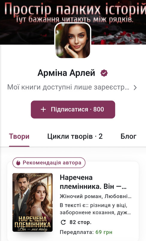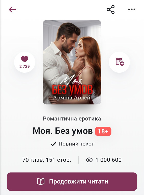 І це ще не все моя перша історія «Моя. Без умов» тут вже набрала 1 000 600 прочитань.