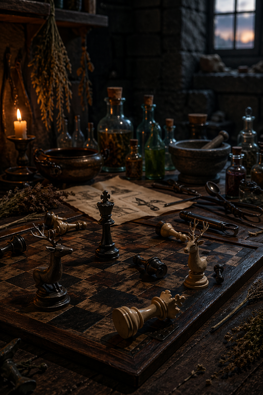 У вашій історії роль коней виконують олені і на шаховій дошці 2 фігурки оленів) Дуже символічно