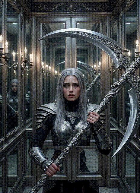 – Ну, що, людинко? Тепер будемо знайомитись? – спитала вона, штовхаючи двері. Пальці стиснули руків'я коси. Попри загальну готовність, погляд Азраель все ж лишався стривоженим.