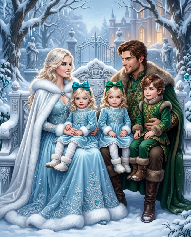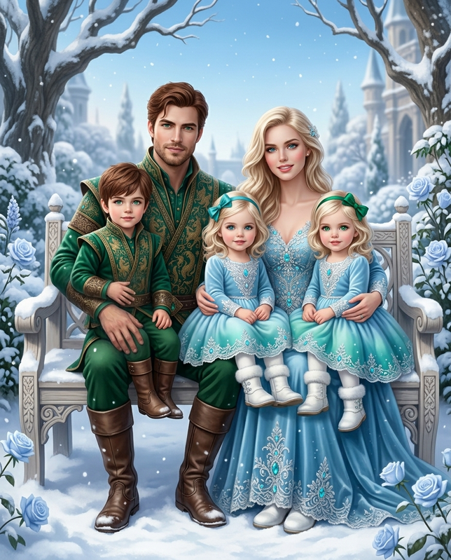 І діточки.❤️❤️❤️ Син Ерінвальд ІІ і дочки Фейларія і Елліора. Фейларія з бірюзовим бантиком, Елліора — із зеленим.❤️
