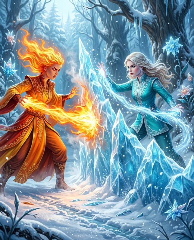Я навіть не думала відступати — виставила руки вперед, відчуваючи, як магія виривається з мене нестримною хвилею. Переді мною виросла крижана стіна — товста, щільна, висока.Вогонь вдарив у неї.