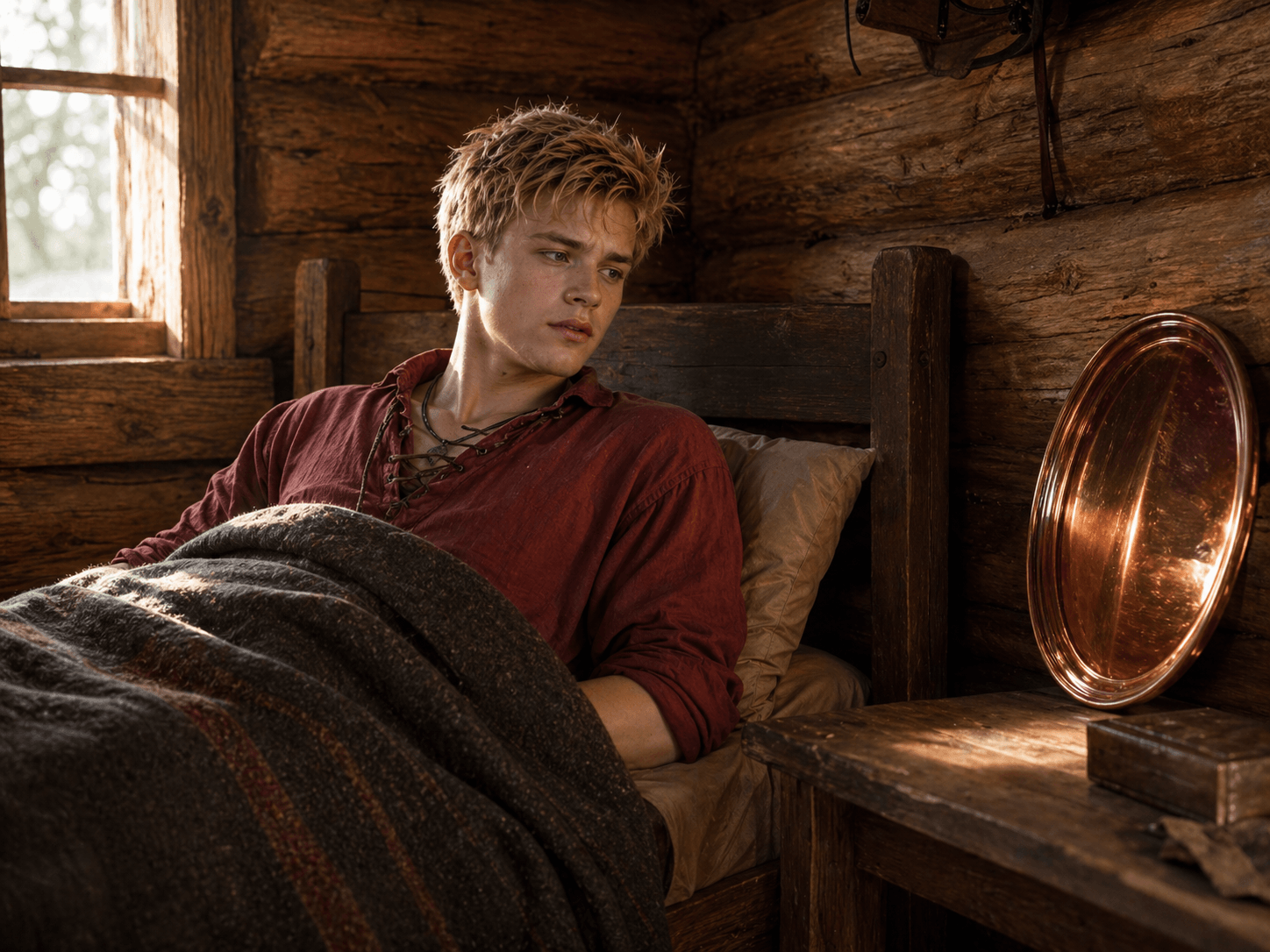 Доклавши зусиль (тіло слухалось команд не просто погано – препаскудно, як новачок у перший тиждень БЗВП), повернув голову. На столику коло стіни стояла мідна таця – стара, заюзана, зате до блиску надраєна. Худо-бідно можна було дивитись, як у дзеркало. І там я побачив… Себе.