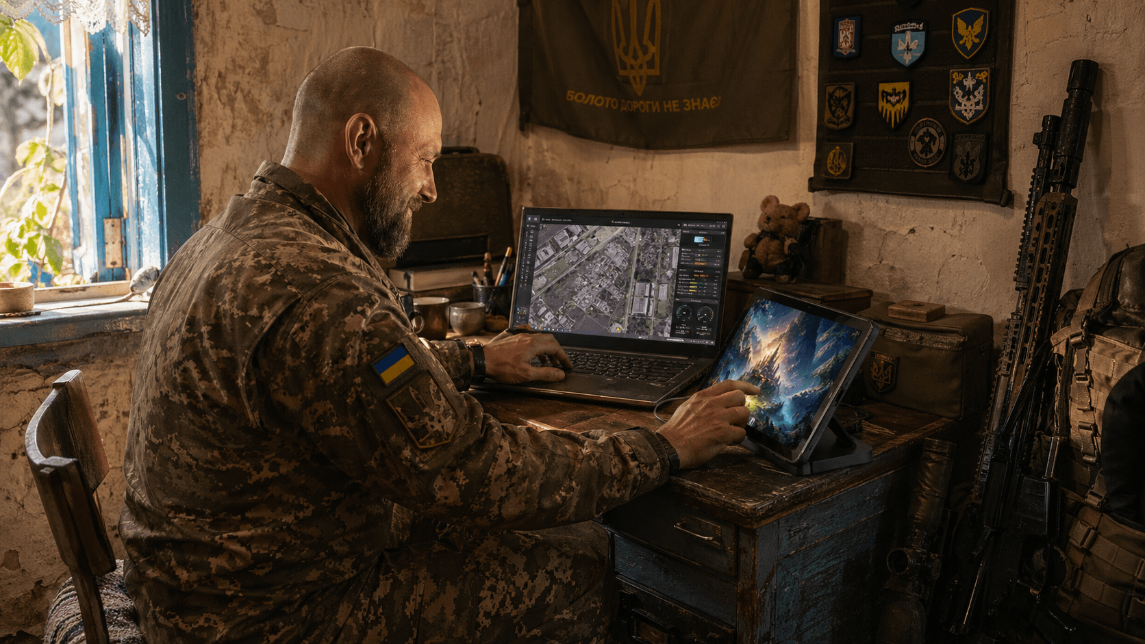 Прапор на стіні - експромт ШІ)) Але фраза, на диво, трохи стосується моєї роботи.