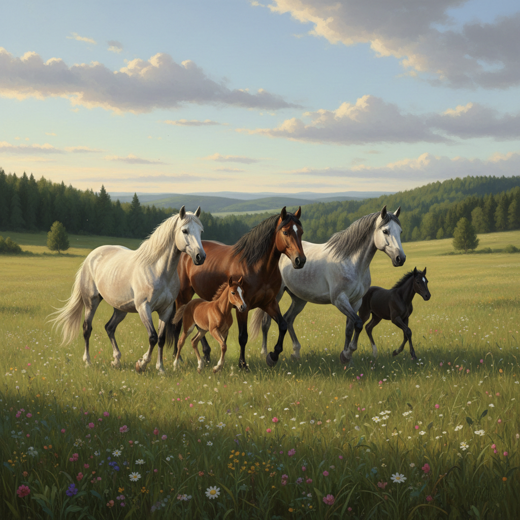 Ми з сестрою дуже любили гратися з молодшим братиком .Найчастіше ми граємося в хованки всією родиною,адже ми дуже дружня родина .Ми вийшли погуляти родиною та зустріли Юлю .Потім я помітила, що поряд з нею йшли два дорослі коні та двоє малюків.