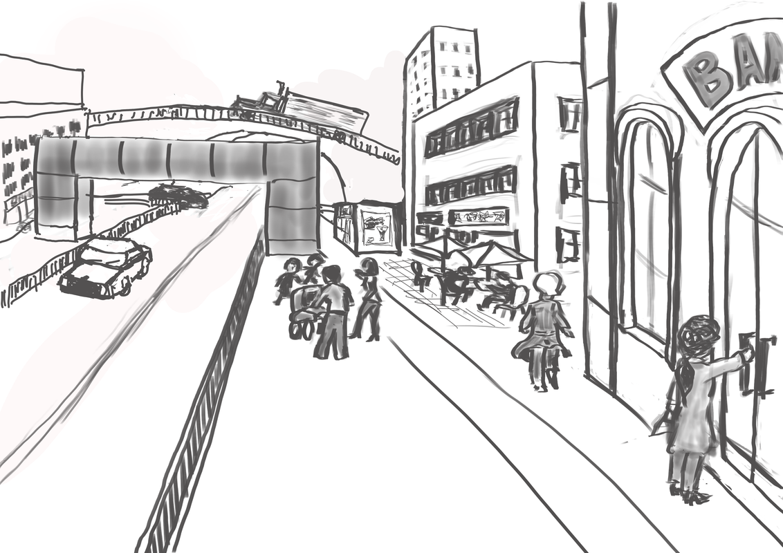 Перші поверхи займали магазини та установи, де одні торгували одягом, інші косметикою, різні банки, сервісні центри та інші бізнеси. Весь спектр різноманіття. Гарне місце для бізнес гри. Відразу народилась назва «Ділова мандрівка».