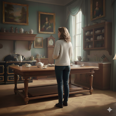 Чекаючи повернення господині, Адель з цікавістю розглядала інтер’єр кімнати. Складалося враження, що більшість речей залишалася нерухомою цілу вічність. Меблі виглядали старовинними, проте були збережені у бездоганному стані. Їхній запах був не обжитим, як це частенько буває в старих будинках, а навпаки — новим, ніби речі щойно доставили з крамниці. Здавалося, що дівчина потрапила до музею.