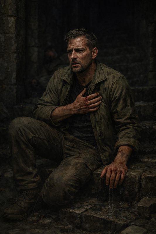 Тіло ниє, але вже не болить. Просто важке, затерпле. Руки терпнуть, нога дерев’яна. Розгинаю пальці, тягне, але слухається. Вдих. Повільний. Видих. Дихаю рівно. Десь далеко чути краплі. Рідко, ледь помітно. Кап… і тиша. Ще одна. І знову довга пауза. Темрява стає спокійнішою, більш нормальною. Чи, може, очі вже трохи звикли.