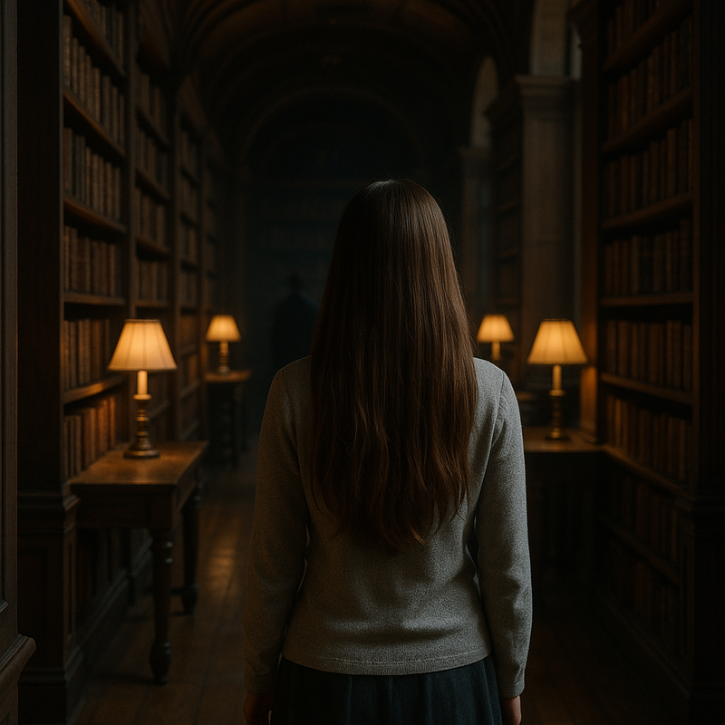 Емма насупилася, вдивляючись у напівтемряву. Нічого. Лише книги, тиша й приглушене світло ламп, що ковзало корінцями. Можливо, хтось зі студентів?