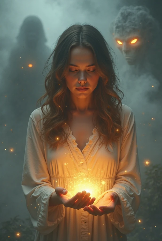 Яскраве світло вихопилося з її долонь, прорізаючи темряву. Істота відступила, але не зникла.