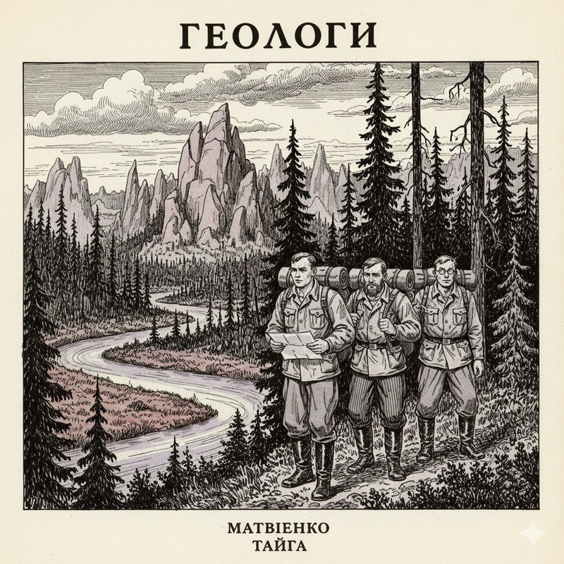 Ми простували вже третій тиждень. Тайга у сих краях була прегарна, але й сувора. Ми мужньо долали горби, спускалися в глибини лісу, брьохалися багнищами та купинами. Спинялися біля синіх річок та озер, поміж сіро—фіалкових скель, вишукуючи родовища хризотилу.
