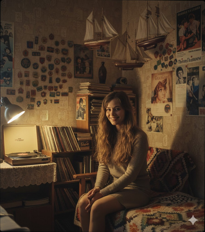І ось він, ледь стримуючи хвилювання, прийшов до неї з трьома яскраво—червоними гвоздиками у їхню затишну квартиру. Квіти спалахнули, як маленькі маяки, одразу додаючи об’єму та яскравості її кімнаті, яка дихала музикою. Вона була наповнена важкими музичними платівками, світлинами закордонних акторів, постерами фільмів та рок—гуртів.