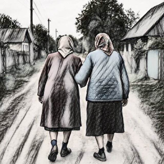 Їм обом зараз під вісімдесят. Будинки — один навпроти одного через дорогу, та зустрічаються хіба що тільки тут, коли "по хліб". А то — не розлий вода з дитинства.