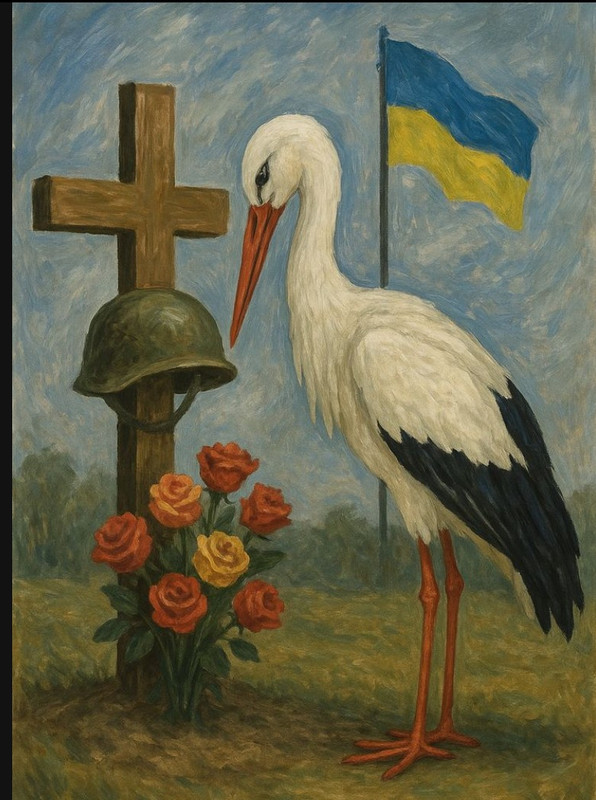Лелека опустився поряд. Пильно глянув на свого друга. І став поруч.