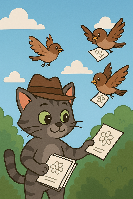 Кіт намалював курточку в кольорових ромашках. Зробив копії і покликав горобців.
