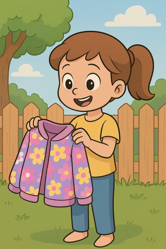 Дівчинка одягнула курточку і затанцювала на місці від радощів.