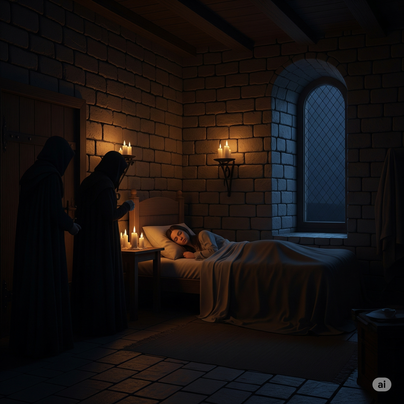 Ніч упала раптово. Небо за вікном потемніло, як чорнильна пляма на пергаменті. У кімнаті не горіло нічого, крім одного каганця на підвіконні. Я лягла, але сон не йшов. Пульс стукав у вухах. Волосся пахло чебрецем, а спина не розслаблялася.
