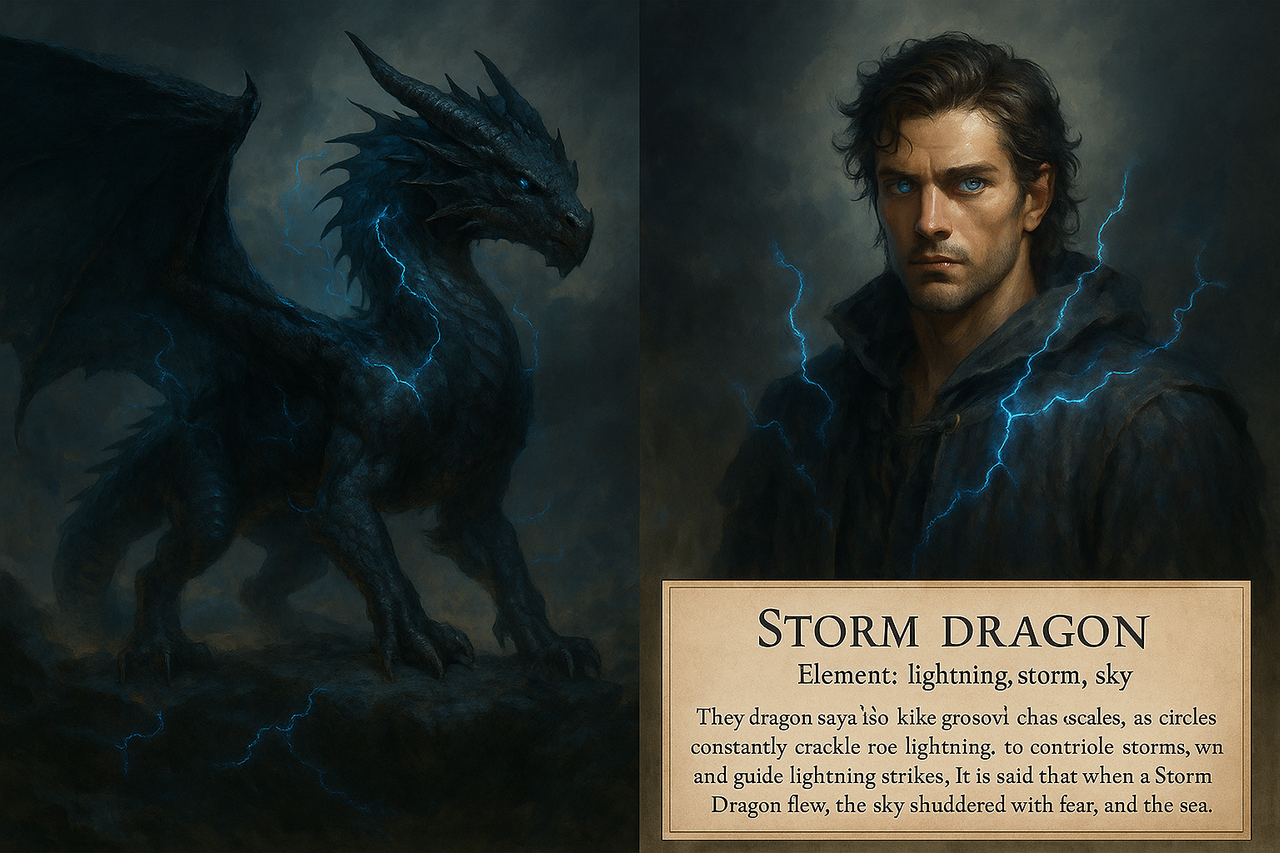 Їхні крила були темні, як грозові хмари, а на лусці завжди пробігали іскри. Вони керували бурями, могли змусити вітер змінити напрям, а блискавку — впасти туди, де потрібно.
