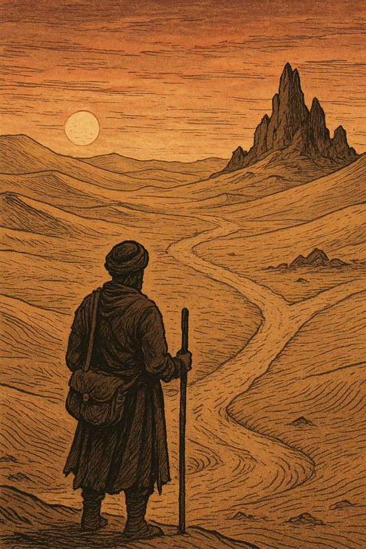 Радас і Арія обмінялися поглядами, проте ніхто не заперечував. Відчували: це рішення вже визріло у серці Ельсара, і сумніви не повернуть його назад. Він ще раз окинув поглядом дюни, немов шукаючи підказку у золотих хвилях піску, й рушив ліворуч — до скель, прихованих маревом, де за переказами чекав Окаменілий Голос.