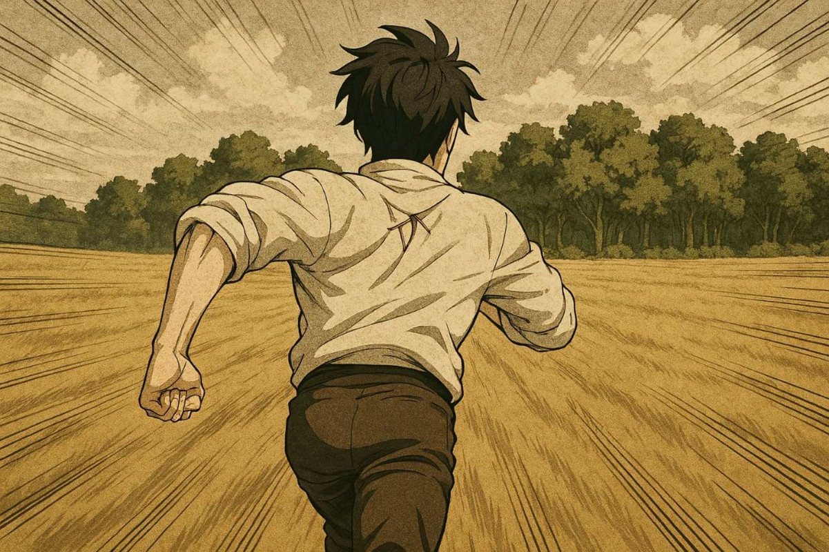 Охоронці кинулися за ним, і хлопець, оминаючи людей, вискочив збоку й ускочив у посадку дерев, що росла біля поля, тепер намагаючись ховатися серед дерев.