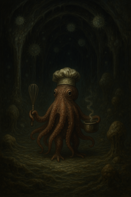 Я витягнув з кітеля самурайський шеф-ніж та голосно проголосив: Я — шеф-восьминіг ресторану “Катарсис”! Споживання мене суперечить пункту 7.8 Всесвітнього Кодексу Харчових Ланцюгів!