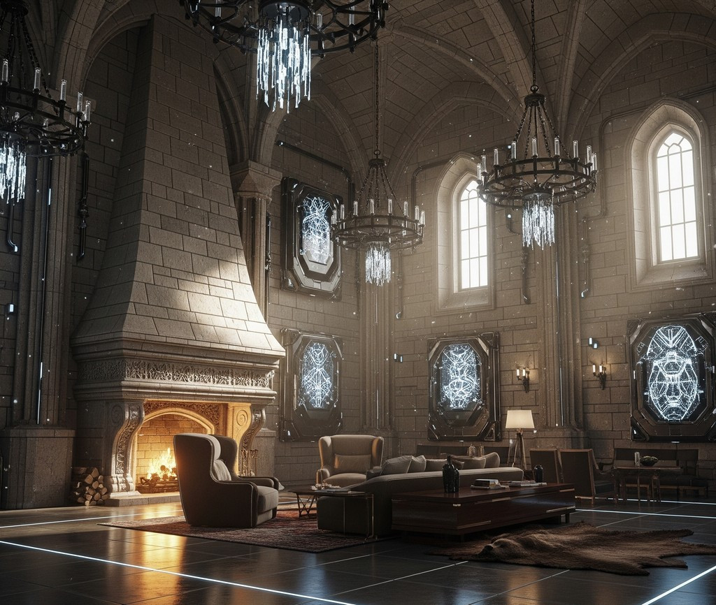 сподівався потрапити у свої апартаменти, але замість них побачив величезний зал, оздоблений невідомо чим — такої краси я ще не бачив. Раптом з'явилася прислуга а це були слуги-роботи, які вишикувалися вздовж стіни та шанобливо привіталися до нас.