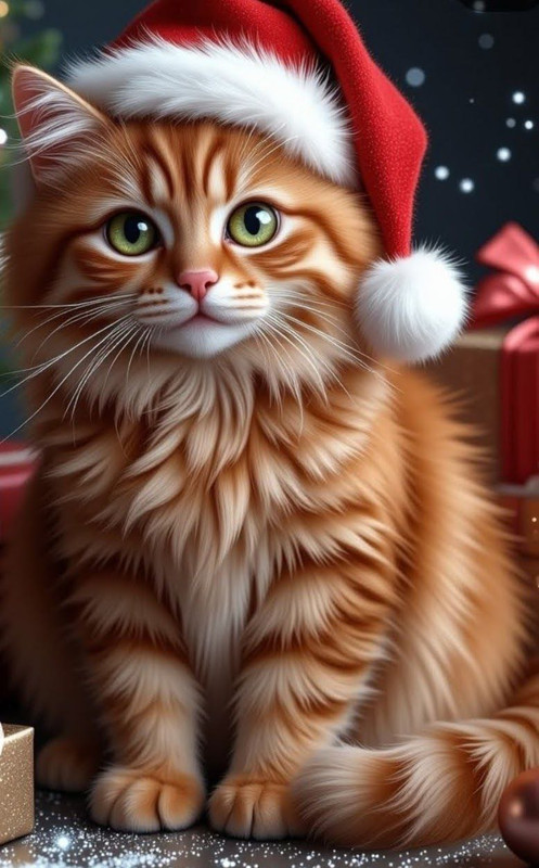 – Ну, побачимо, що там ті дві шкоди подарували цього року, – мовила ЛаРоса та з коробкою зайшла до своєї оселі. – Хлопці, погляньте, яку милу мармизку нам подарували на свято! – вигукнула ЛаРоса та витягнула з коробки руде кошеня у капелюшку Санти. – Манюня, ти ж, певно, голодний?