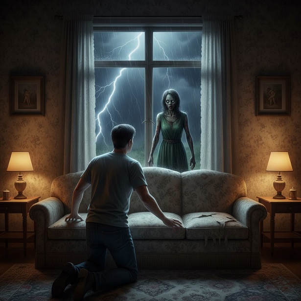 Втім, страх Васі можна було зрозуміти – саме в цей момент в обличчя з прочиненого вікна йому дмухнуло поривом вітру із затхлим запахом вогкості і старості. А слідом за вітром повз вікно проплив знайомий жіночий силует...