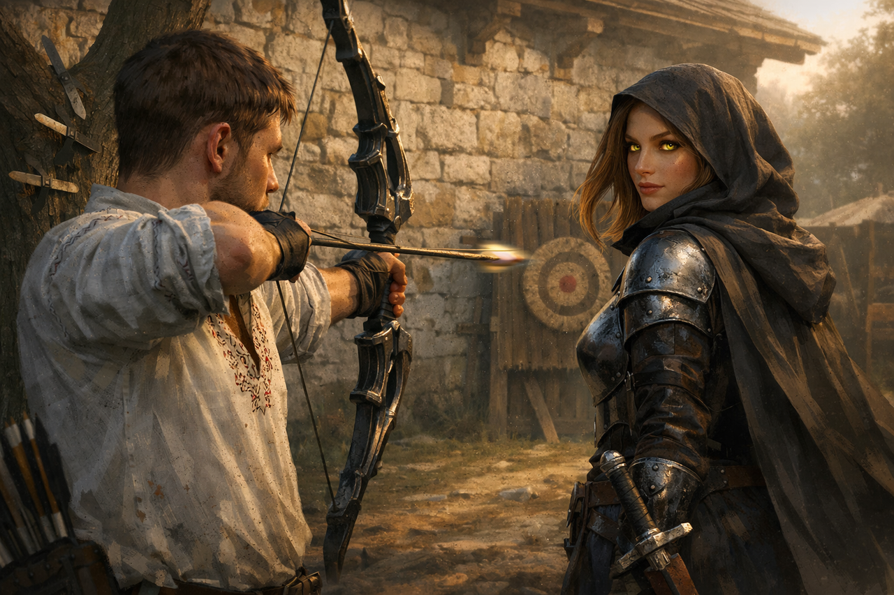 Після бігу — година фехтування, стрільба з лука та метання ножів. Останнє давалося найважче: лише з третьої спроби ніж глухо впивався в стовбур дерева, залишаючи неглибоку, але вперту зарубку. Ягрім помітно нервував через невдачі в метанні — щелепи стискалися, рухи ставали різкішими, ніж зазвичай.