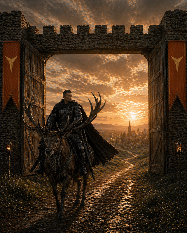 Провівши останню годину в місті за наказами, зброєю й короткими приготуваннями, перед заходом Бору Сірий скочив на бойового оленя й вирушив назустріч шрамам минулого.