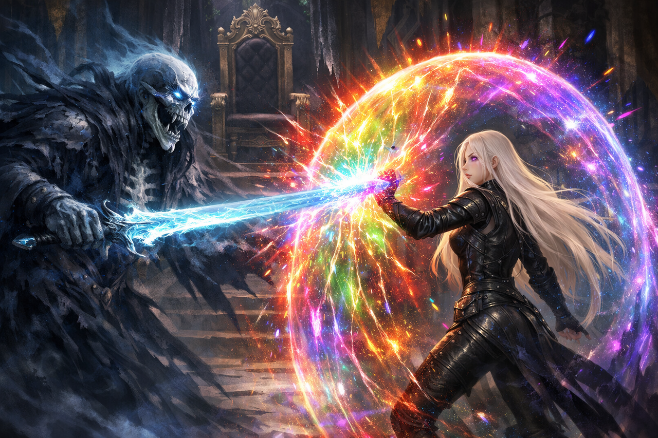 Батіг, у руці потойбічника перетворився на примарливий меч. Удар ледь не збив Вірраю з ніг. Адамантовий щит пішов різнобарвними хвилями. Цей удар він витримав, та чи зможе він витримати ще один такий напад?