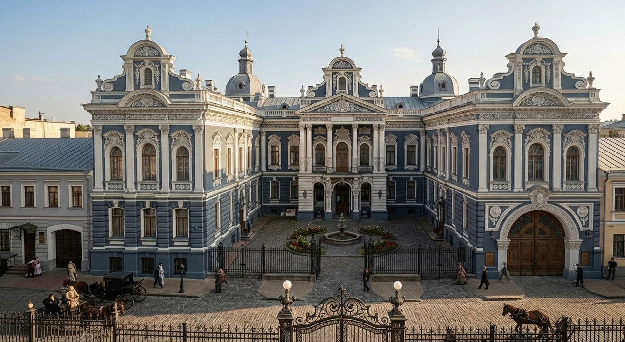 Цей особняк наче зустрів мене стриманим, але приємним скрипковим акордом. Глибокий сіро-блакитний колір стін здавався основою — басовитою, впевненою, на яку білосніжним легким сопрано лягала ліпнина. Кожна лінія фасаду була виразна, кожен завиток біля вікон — як ідеально прописана нота в партитурі вишуканої симфонії.