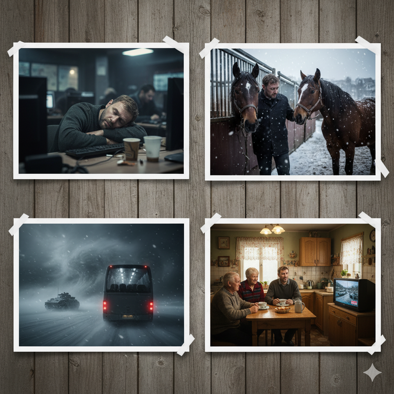 На кухні, у колі сім’ї за чашкою гарячого чаю, ми дивилися новини. На всіх каналах транслювали кадри аномального снігопаду, який паралізував рух у столиці, звідки мені вдалося вирватися в останню мить. Для боротьби зі стихією й допомоги застряглим випустили БТРи та іншу військову техніку. Але навіть вона виявилася безсилою. Три дні місто стояло. Страшно уявити, що б чекало коней і мене, якби тоді я вчинив інакше.