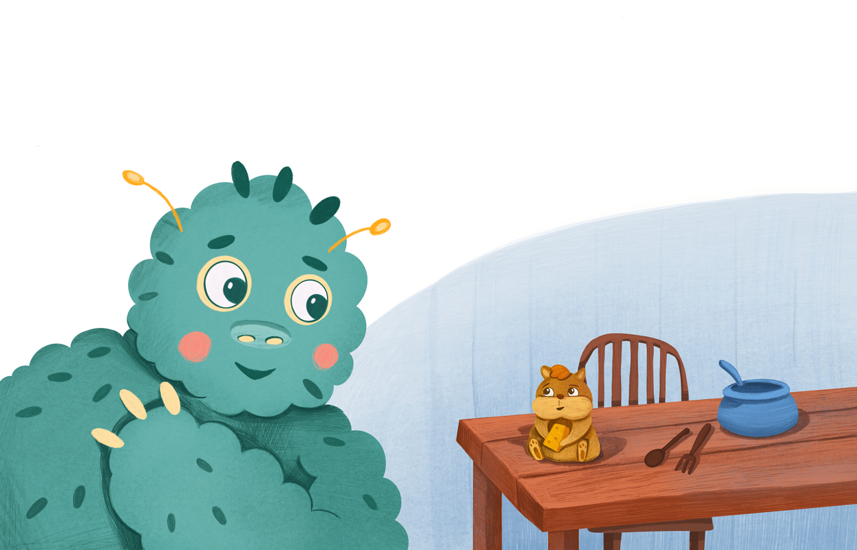– Привіт, я твій сусід, – ніяково відповів хом’ячок і додав: – Пробач мені, що відразу не прийшов познайомитись, я трохи боявся… Нещодавно я вирішив зробити у своїй нірці ще одну невеличку комору і ненароком прогриз дірку до твоєї оселі, бо не знав, що тут ще хтось живе.
