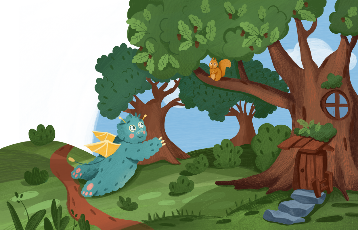 Це було поряд, у дубовому гаю, бо якраз в стовбурах міцних дубів зазвичай найбільше місця. Білочки вже наносили в нове житло Бабая сухих листочків і моху для затишку, і йому все дуже сподобалось. Цієї ночі він спав у зручному дуплі і мріяв про те, як почне облаштовуватись на цій галявині. Також йому снились приємні сни і проспав він усю ніч, зовсім не прокидаючись.