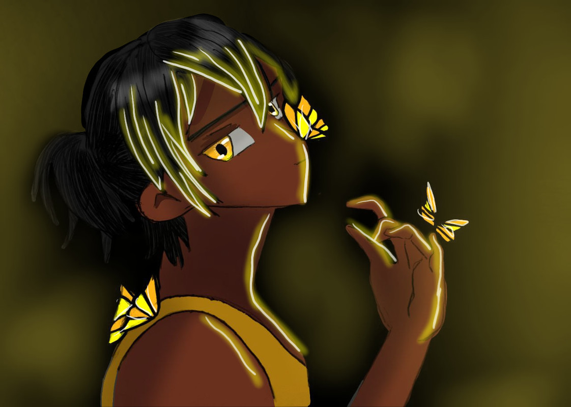 Роман, в жовтій спортивній майці сидів у траві, а навколо нього кружляли метелики, зовсім не боючись дивакуватого хлопця. Одне, жовте крилате створіннячко сіло на смуглявий ніс, інше легко торкалося довгих елегантних пальців, а третій метелик сів на плече. Як не дивно, а метеликів в цьому парку було чимало. Богдан все намагався схопити декілька…
