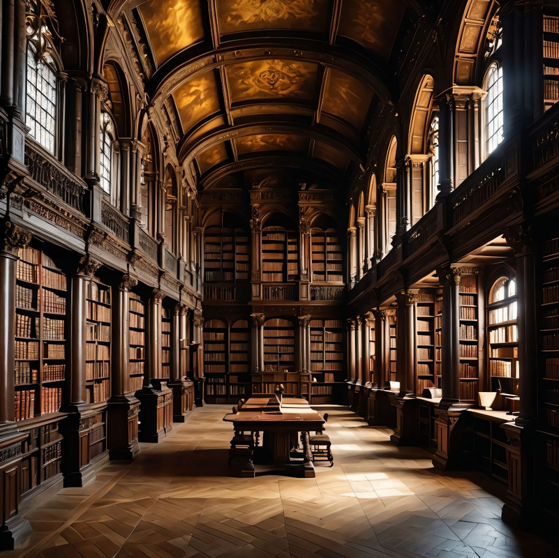 Архіви замку Іктаріса вражали навіть її уяву. Сотні стелажів, мов ряди дерев у стародавньому лісі, здіймалися, гублячись у тіні під склепіннями. Пилюка, що осідала на товсті фоліанти, пахла давниною, пергаментом і сухими чорнилами. Тут панувала інша тиша — не порожня, а глибока, важка, мов би сторінки самі зберігали секрети й шепотіли їх у темряві.