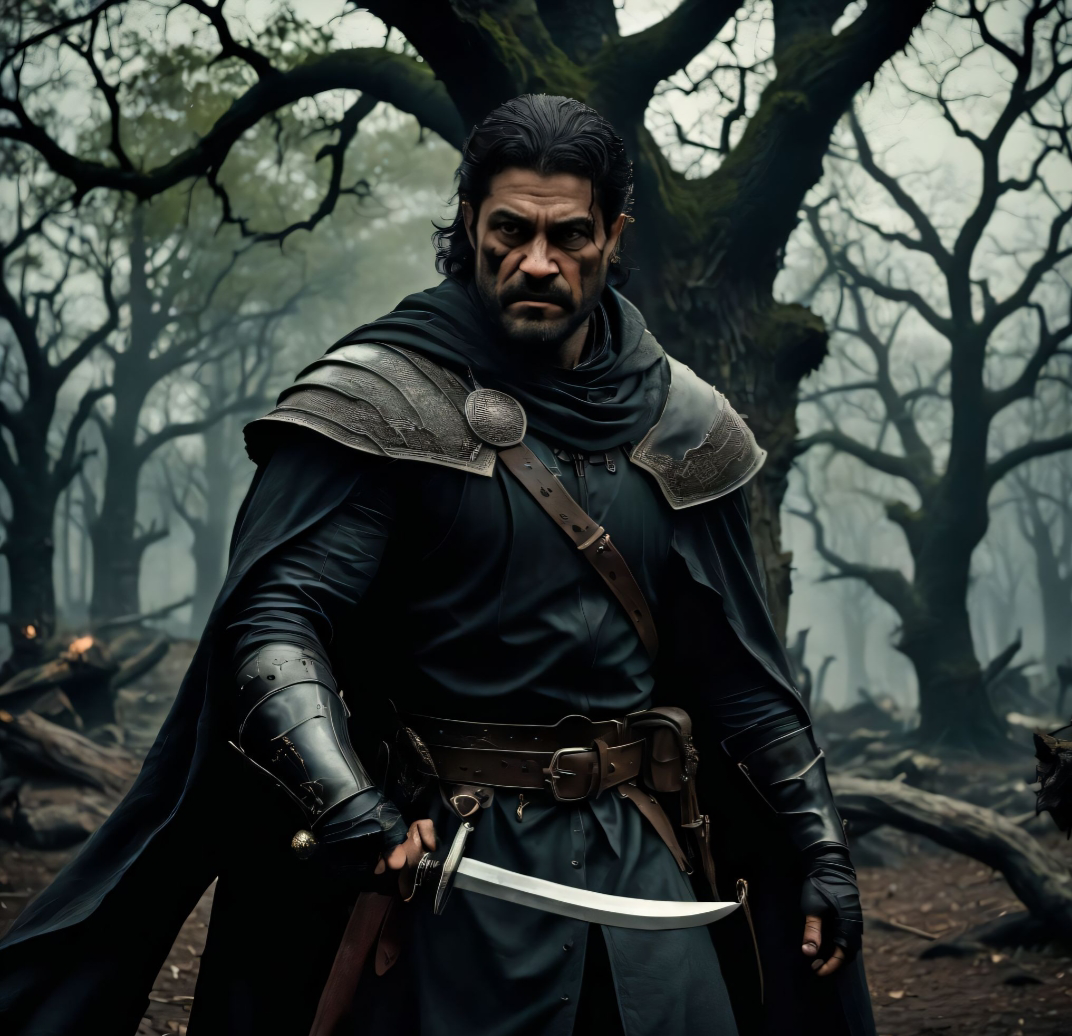 Пил, запах крові й диму. Один із візників лежав ниць, обличчям у землю, темна калюжа під ним швидко розросталася. Коррен сидів, затискаючи поранений бік, кров стікала крізь пальці. Решта, разом із Вельраном, стояли навколішки, зв’язані й беззбройні. Перед ними — чоловік у темному, з очима, як вуглини — ватажок.