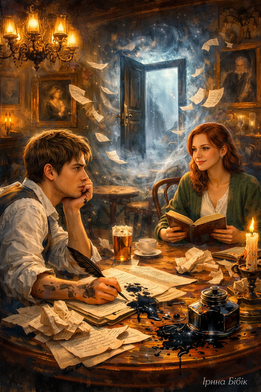 «Він стояв перед дверима, що вели в нікуди. Його пальці, скроплені чорнилом, тремтіли...» — Левко читав власний текст із минулого й морщився. Який же він був пафосний! Кожне слово — наче спроба вразити самого себе в дзеркалі.