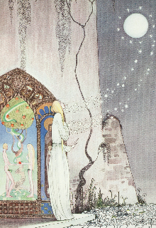 В країні, де стояв це дрімучий ліс, як і має бути по закону казок, був король. Не молодий, але і не дуже старий, хоча сивина пофарбувала сріблом деякі прядки в його волоссі і бороді. Король, хоч і жив серед людей, також не знав горя. Бо горе не може просочитись крізь високі замкові мури, крізь глибокі рви, крізь варту короля, крізь багато вишиті гобелени і шовк, якими прикрашені стіни королівських покоїв. Колись у короля була королева, бо це - обов’язковий пункт для казкового короля. Королева померла при пологах - бо це обовʼязковий пункт для казкової королеви. І лишила по собі дівчинку-маля, яка мала вирости в прекрасну принцесу, згідно казковим законам.