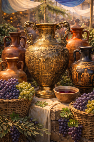 Та сама бронзова амфора з вишуканим на смак вином