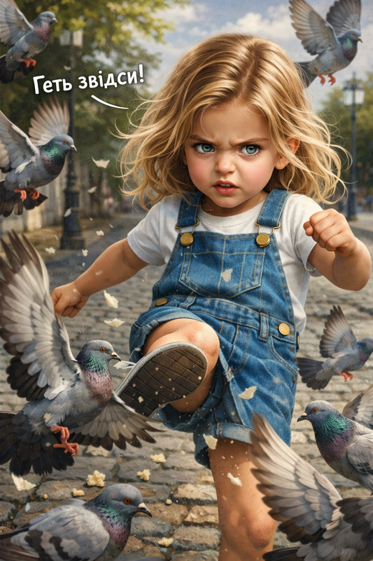 Легкий вітер тихо шелестів листям, а на тротуарі бігали голуби, клюючи крихти хліба, які хтось залишив.