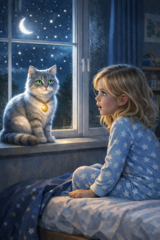 Його шерсть м’яко світилася сріблястим світлом, а зелені очі таємниче блищали в темряві.