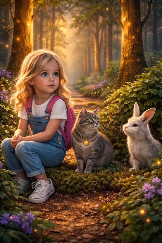 Коли вона відкрила очі, перед нею знову був чарівний ліс: високі золотисті дерева, м’яке світло, квіти й світлячки, а десь поруч тихо дзюрчала вода.