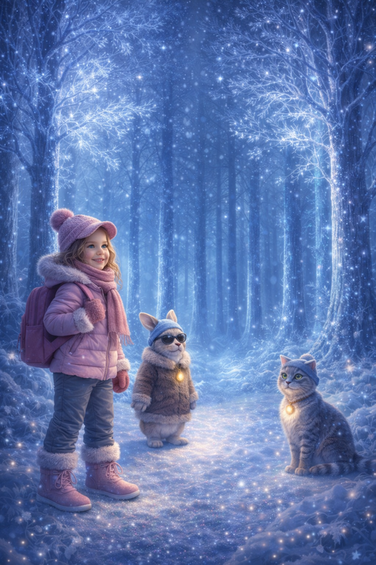 Дерева навколо більше не були золотими. Їхні стовбури світилися холодним сріблясто-блакитним світлом, ніби всередині них застиг лід. Гілки вкривали кришталеві візерунки, що тихо переливалися, коли їх торкався вітер, а замість світлячків у повітрі повільно кружляли маленькі сяючі сніжинки.