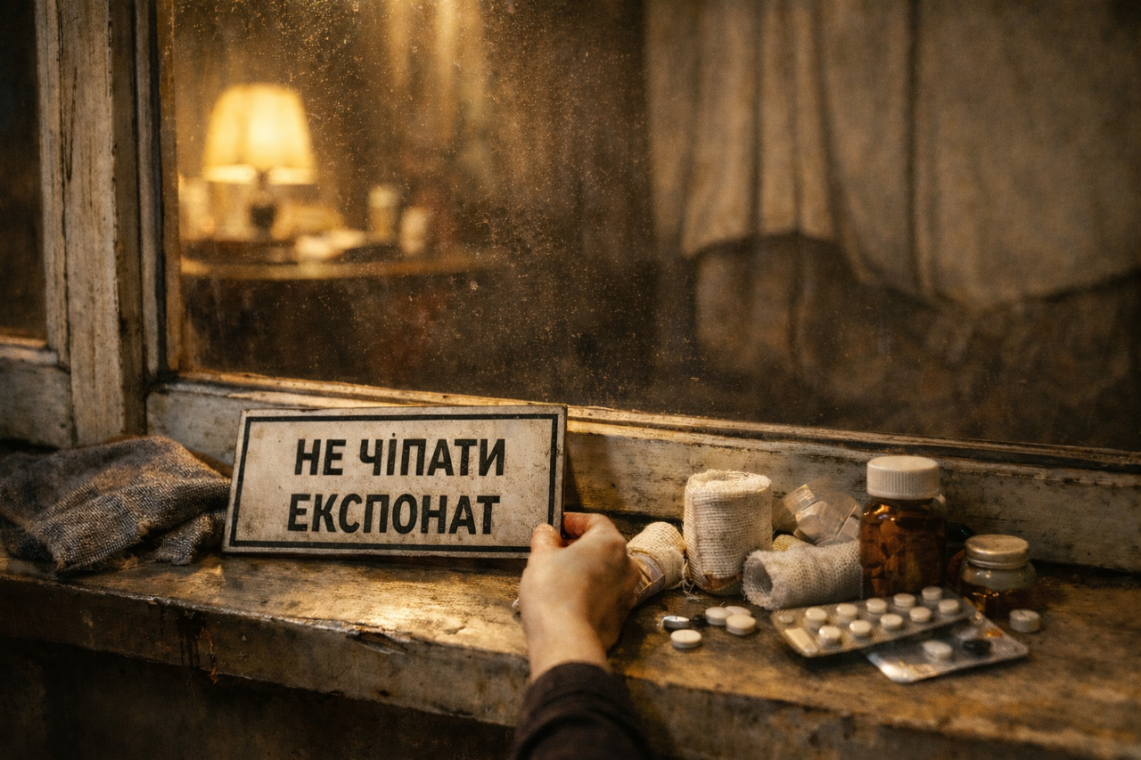 На підвіконні хтось поставив музейну табличку. На ній було написано: “НЕ ЧІПАТИ ЕКСПОНАТ”.