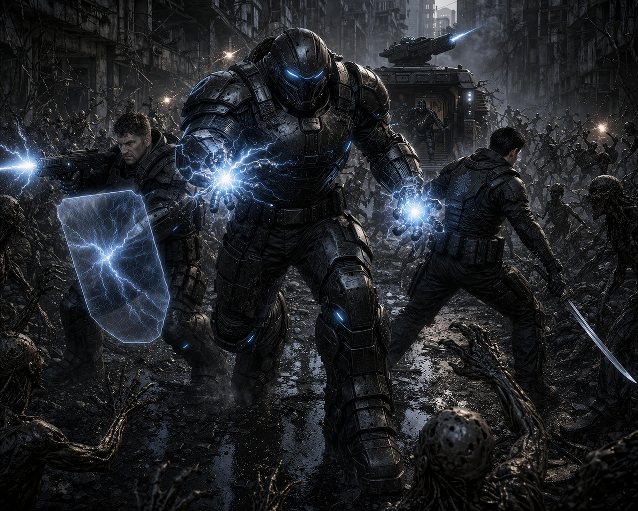 Він ішов у центрі. Не атакував — тримав геометрію. Заражені били в щит масою, як у бетонну плиту, і плита не рухалась. Лише його плечі працювали, як шарніри: прийняв — зняв — знову прийняв.